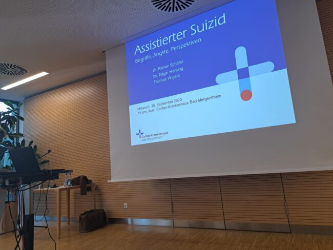 Viele aktive und zukünftige ehrenamtliche Sterbebegleiter unseres Hospizdienstes Kocher/Jagst waren der Einladung des Caritas Bad Mergentheim gefolgt und besuchten am Abend des 20 September 2023 den interessanten Vortrag mit anschließender Diskussion. Unter einem assistierten Suizid versteht man die „Beihilfe zur Selbsttötung“. Der Sterbewillige nimmt selbstständig eine Substanz zur Selbsttötung ein. Eine andere Person, das heißt…