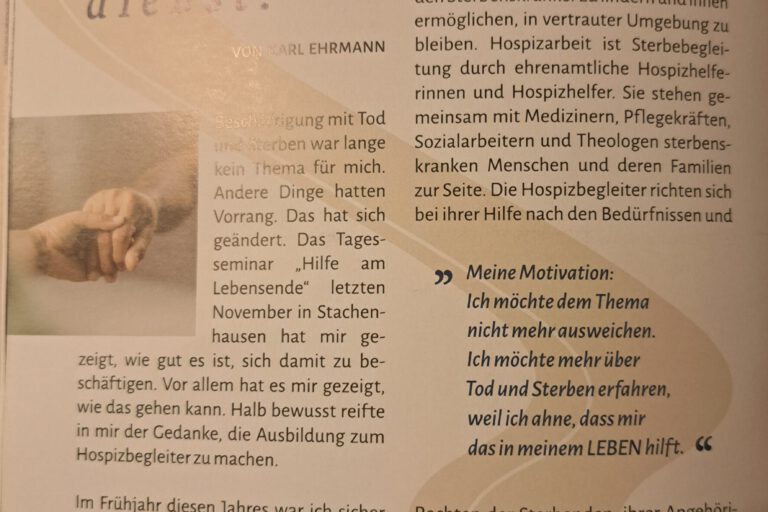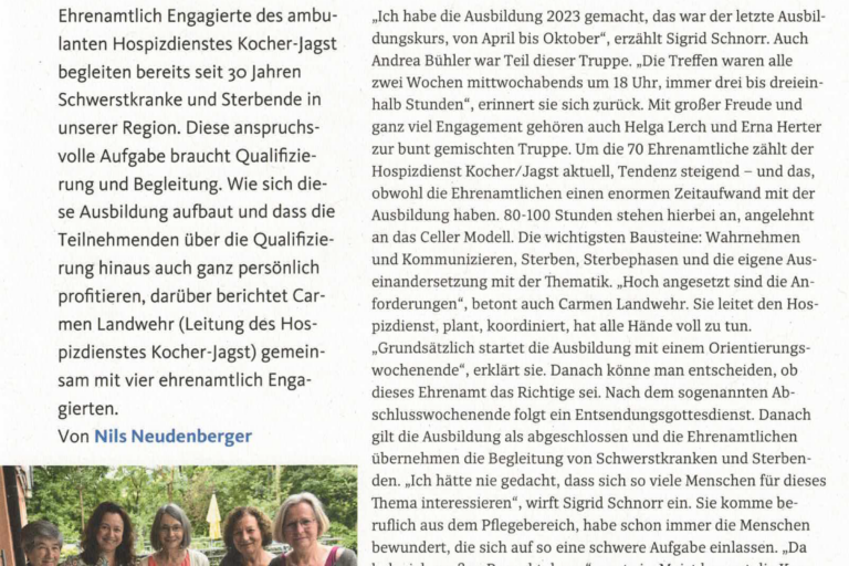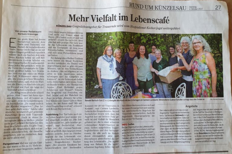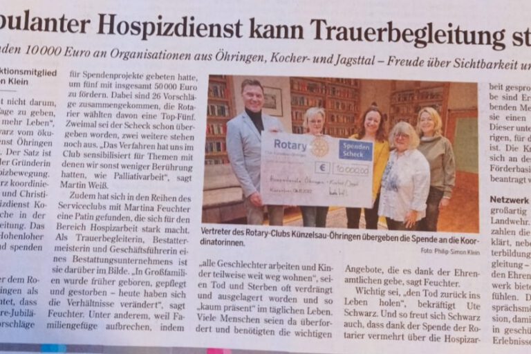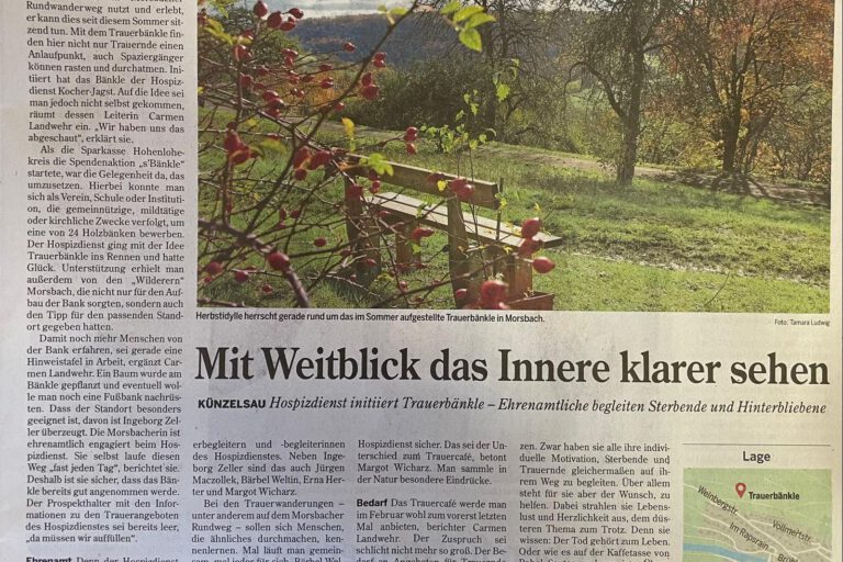 Informationsveranstaltung und Vortrag des Hospizdienstes Kocher/Jagst bei den Landfrauen Hermuthausen- Belsenberg anlässlich des Luzia-Tages. Am 15.10.2025 folgte die stellvertretende Leitung und Koordinatorin des Hospizdienst Kocher/Jagst, Rahel Sauter, der Einladung der Landfrauen Hermuthausen-Belsenberg anlässlich des LUZIA-TAG , in einem Vortrag und anschließendem Austausch den nun schon seit 30 Jahren bestehenden Hospizdienst Kocher/ Jagst vorzustellen. Der Oktober…