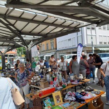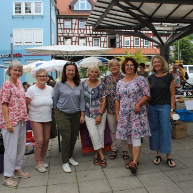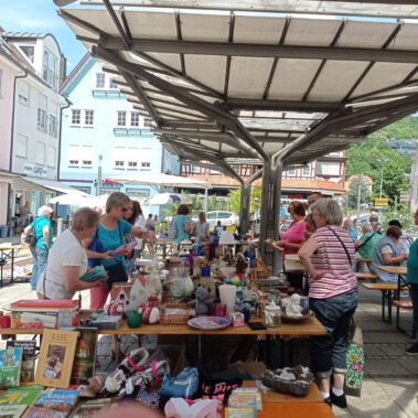 Am Mittwoch 06.07.2022 fand der erste Flohmarkt der Nachbarschaftshilfe der Diakoniestation Künzelsau und des Hospizdienstes Kocher/Jagst am unteren Marktplatz in Künzelsau statt. Viele fleißige ehrenamtliche Helfer/innen hatten Flohmarkt Artikel von zu Hause aussortiert, Tombola Preise bei Hohenloher Firmen gesammelt, Kuchen gebacken und unterstützten den Flohmarkt für den guten Zweck auch beim Aufbau, Verkauf von Flohmarktartikel, Ausgabe von Kaffee&Kuchen und beim Abbau und aufräumen.