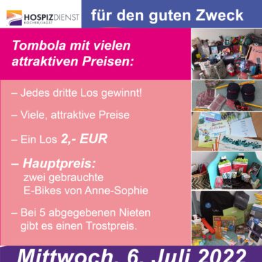 Über 400 Tombola Preise wurden verlost und es gab zwei sehr glückliche Gewinnerinnen der Hauptpreise, zwei gebrauchte E-Bikes, die vom Restaurant Anne-Sophie zur Verlosung gespendet wurden. Der Erlös von knapp 2000€ geht jeweils zur Hälfte an „Menschen in Not“ (Heilbronner Stimme) und an unseren Hospizdienst Kocher/Jagst in die direkte Ehrenamtarbeit für eine kleine Klosterauszeit.