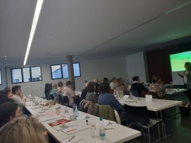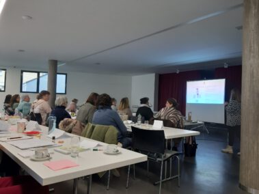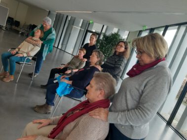Über 30 Ehrenamtliche und einige MitarbeiterInnen von Kooperationspartnern der Diakoniestation Künzelsau und der BBT Gruppe (Seniorenzentren Dörzbach, Krautheim, Schöntal-Westernhausen) waren der Einladung des Hospizdienstes Kocher/Jagst gefolgt und verfolgten mit großen Interesse der sechsstündigen Fortbildung in St.Paulus In Künzelsau.