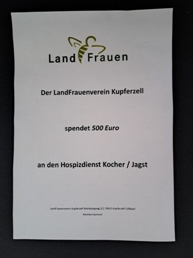 Jährliche Spendenaktion der LandFrauen Kupferzell geht an unseren Hospizdienst Kocher/Jagst