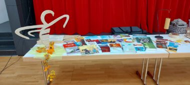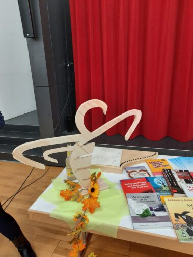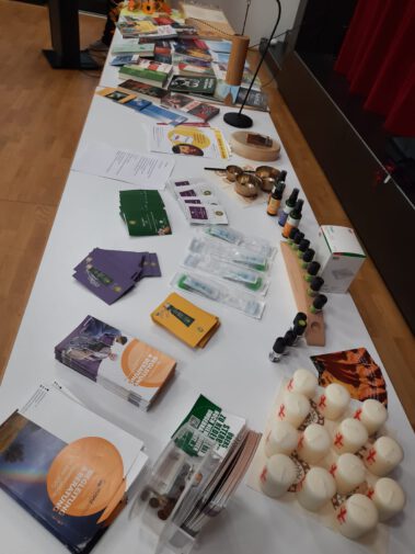 Anschließend konnten Fragen gestellt, Bücher angeschaut, unterschiedliche Düfte getestet und einmal Hand an eine Veehharfe gelegt werden.
