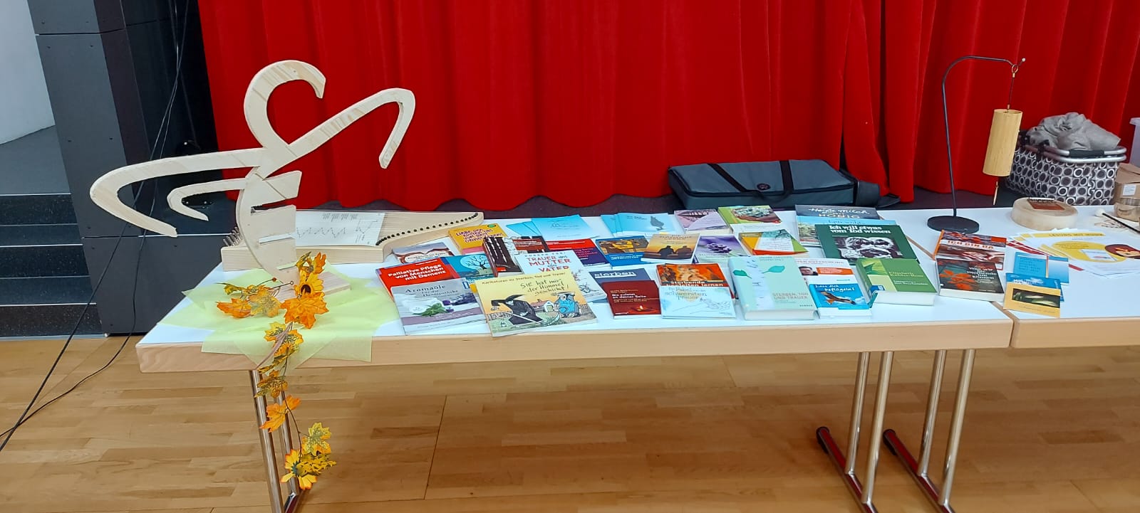 Anschließend konnten Fragen gestellt, Bücher angeschaut, unterschiedliche Düfte getestet und einmal Hand an eine Veehharfe gelegt werden.