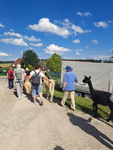 Unser diesjähriger Hospizdienst Ehrenamt- Jahresausflug führte uns bei schönsten ☀️ sonnigen Wetter ins nahegelegene Ingelfingen zum Alpaka- Bobachhof. Bei einen gemeinsamen Alpaka-Spaziergang über die Feldwege in der näheren Umgebung durften wir diese faszinierenden Tiere ganz persönlich kennenlernen. Die Ruhe und Gelassenheit die diese Tiere ausstrahlen, ging oft direkt auf das andere Ende der Leine über! Nebenbei erfuhren wir allerhand Wissenswertes über Alpakas und ihre Besonderheiten und es war auch noch viel Zeit sich untereinander auszutauschen. Der Abschluss war bei leckeren Essen und kühlen Getränken im Biergarten am Kocher in Künzelsau. 🍻