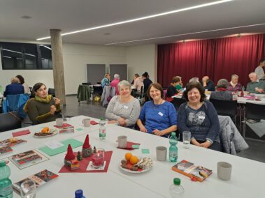 Es wurde gemeinsam gesungen, Veehharfe gespielt, Gedichte und Geschichten vorgetragen und natürlich kam auch der Nikolaus (Claudia Bathe) zu Besuch und brachte für jeden Ehrenamtlichen ein Begleitbuch „Ich bin da“ als Geschenk mit.